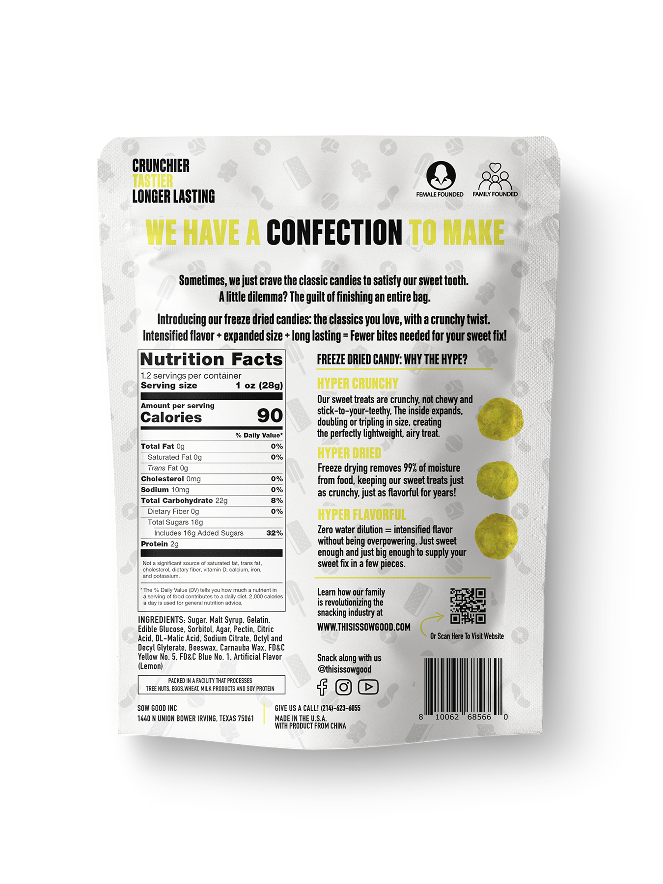 If you're craving a zesty treat that will wake up your taste buds, Lemon Puffs are the answer! Freeze-dried Lemon Puffs take the classic lemon flavored candy you love and give it a crispy twist with an even bolder flavor! And because they're more packed with lemony goodness, expanded in size, and last longer, you won't need as many to satisfy your craving!